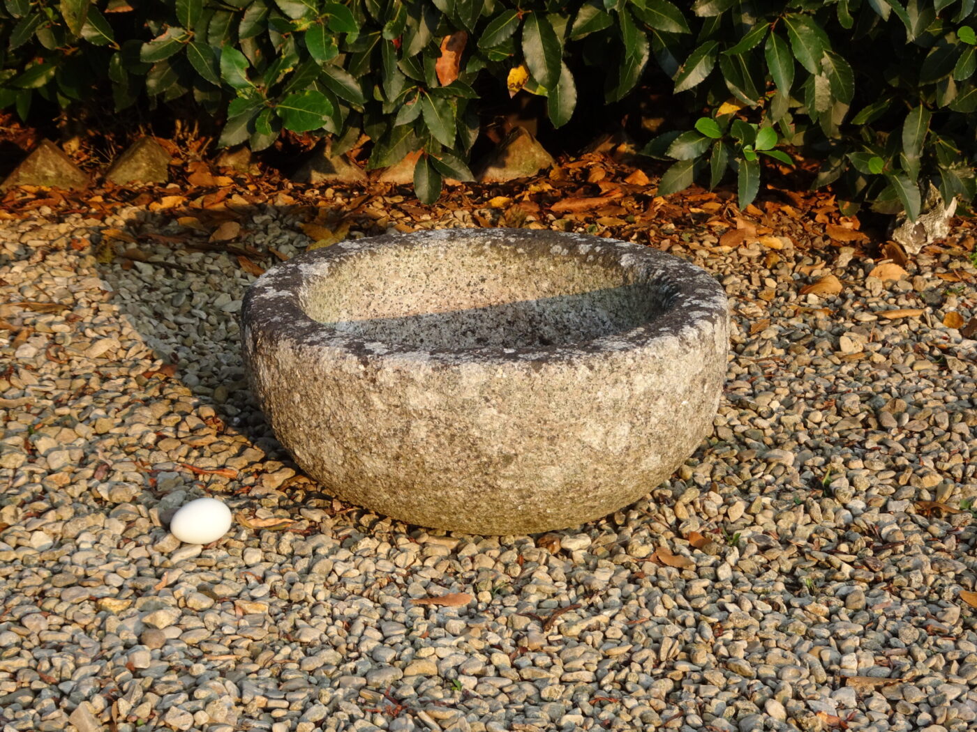 Hand carved in the late 1800s in Cornish granite - an elegant planter or drinking pool. Clearly always a garden piece, with its more refined shaping than a typical of a farmyard water trough.