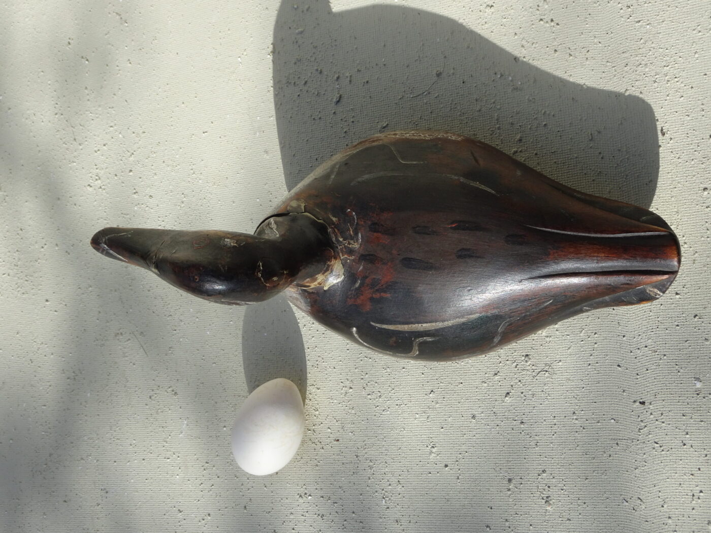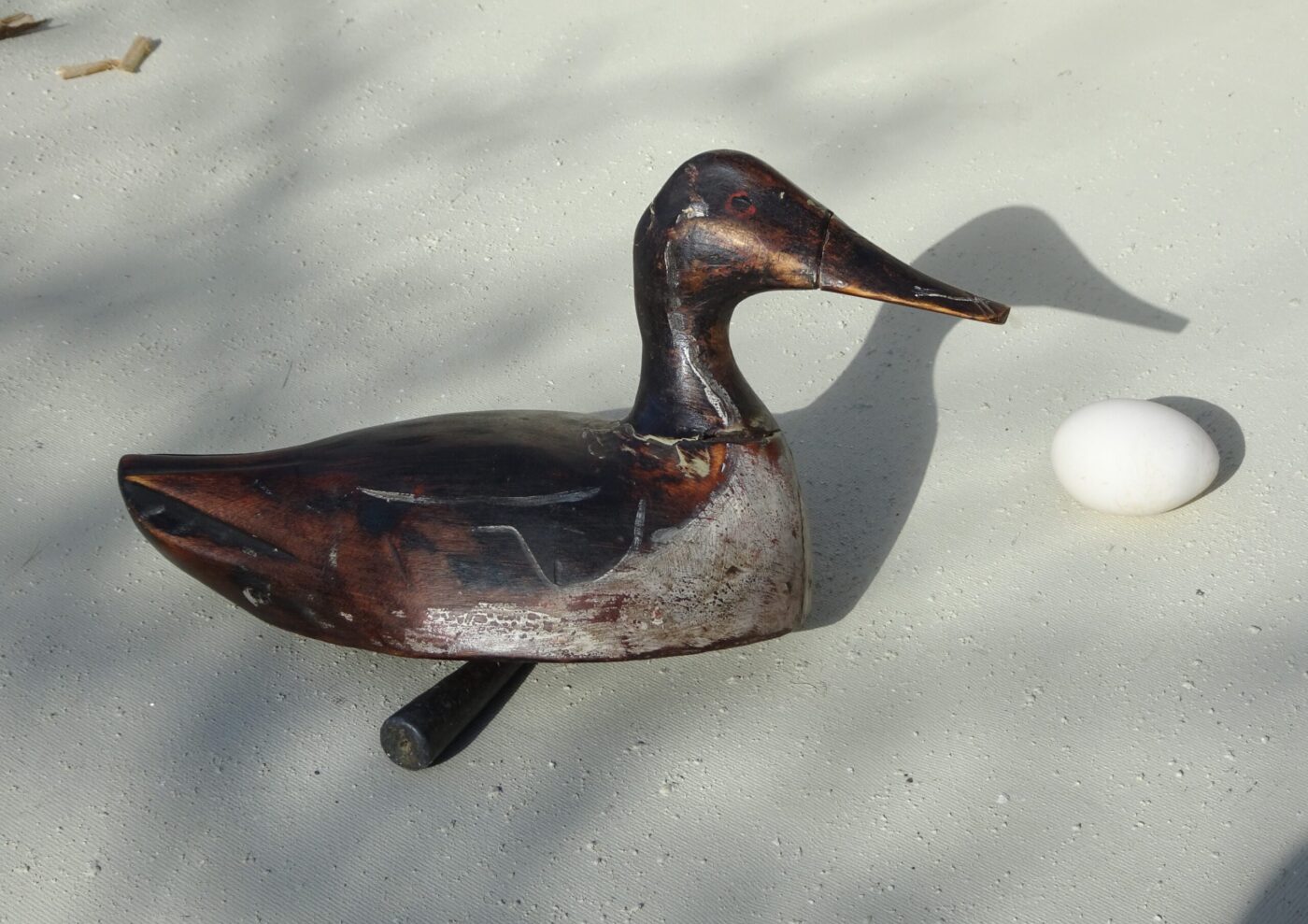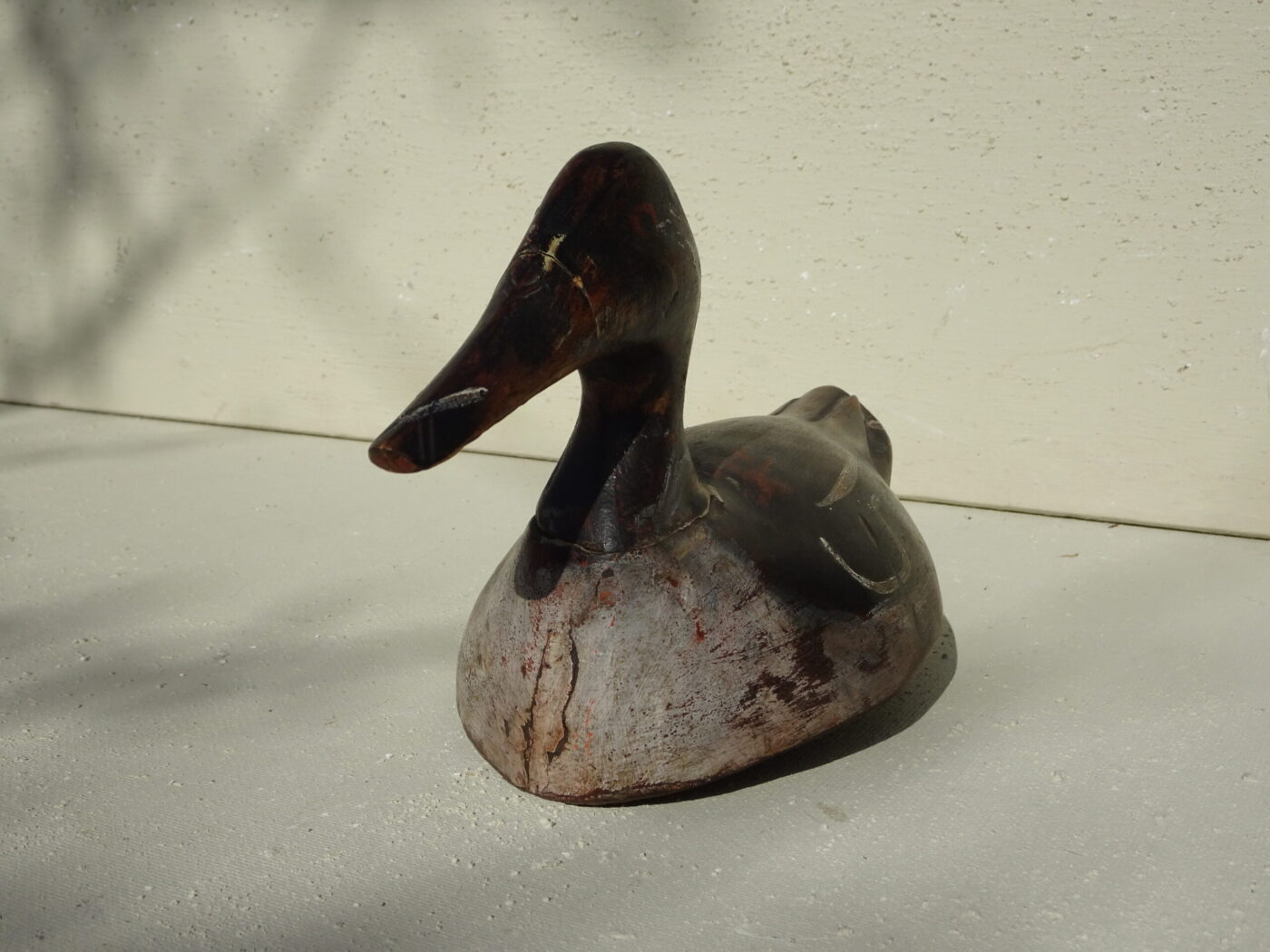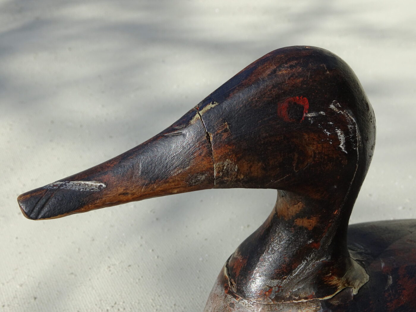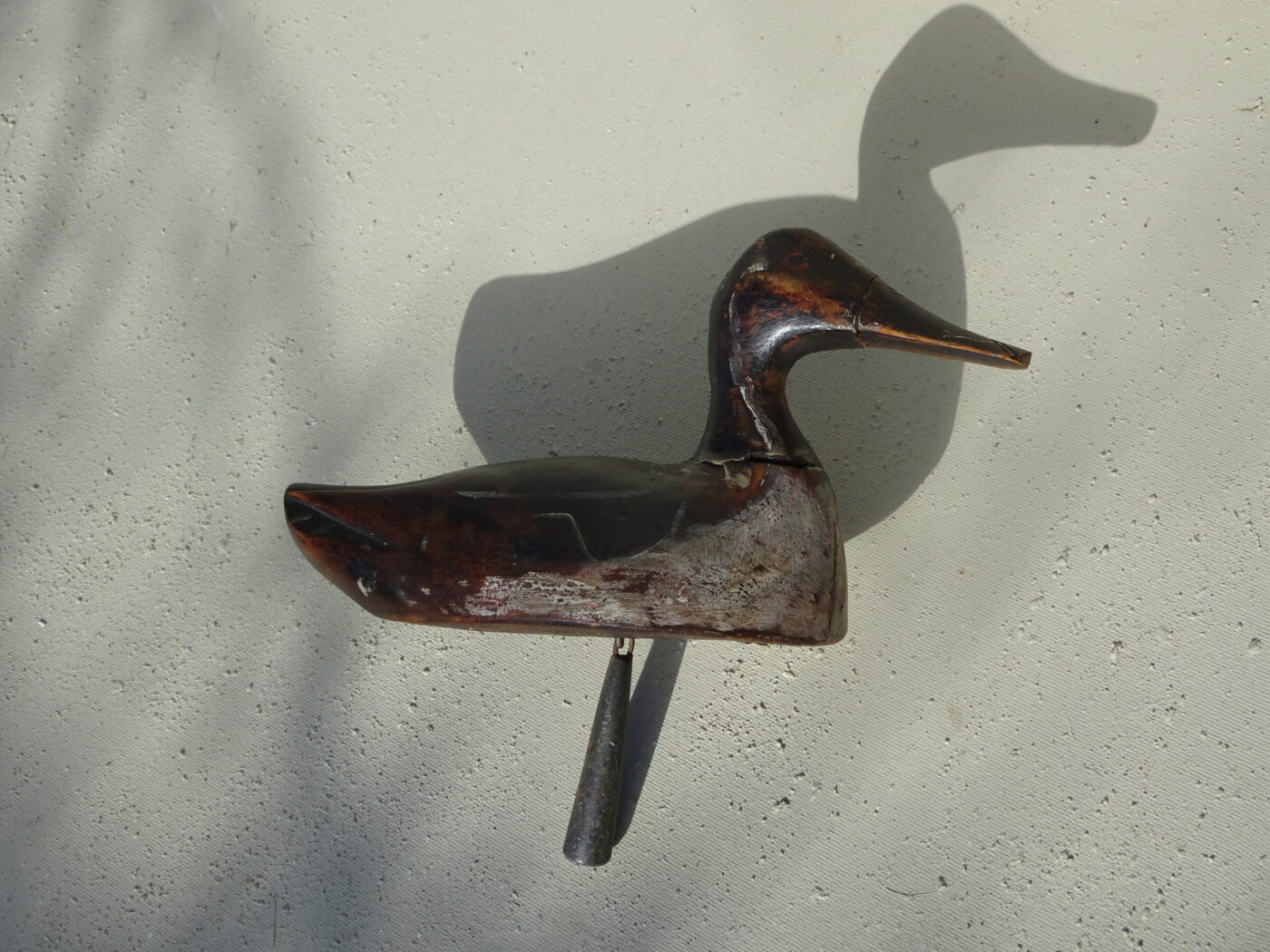 Delightful decoy duck. Hand carved and hand painted. Balance weight attached to stabilise the duck. English c 1900.