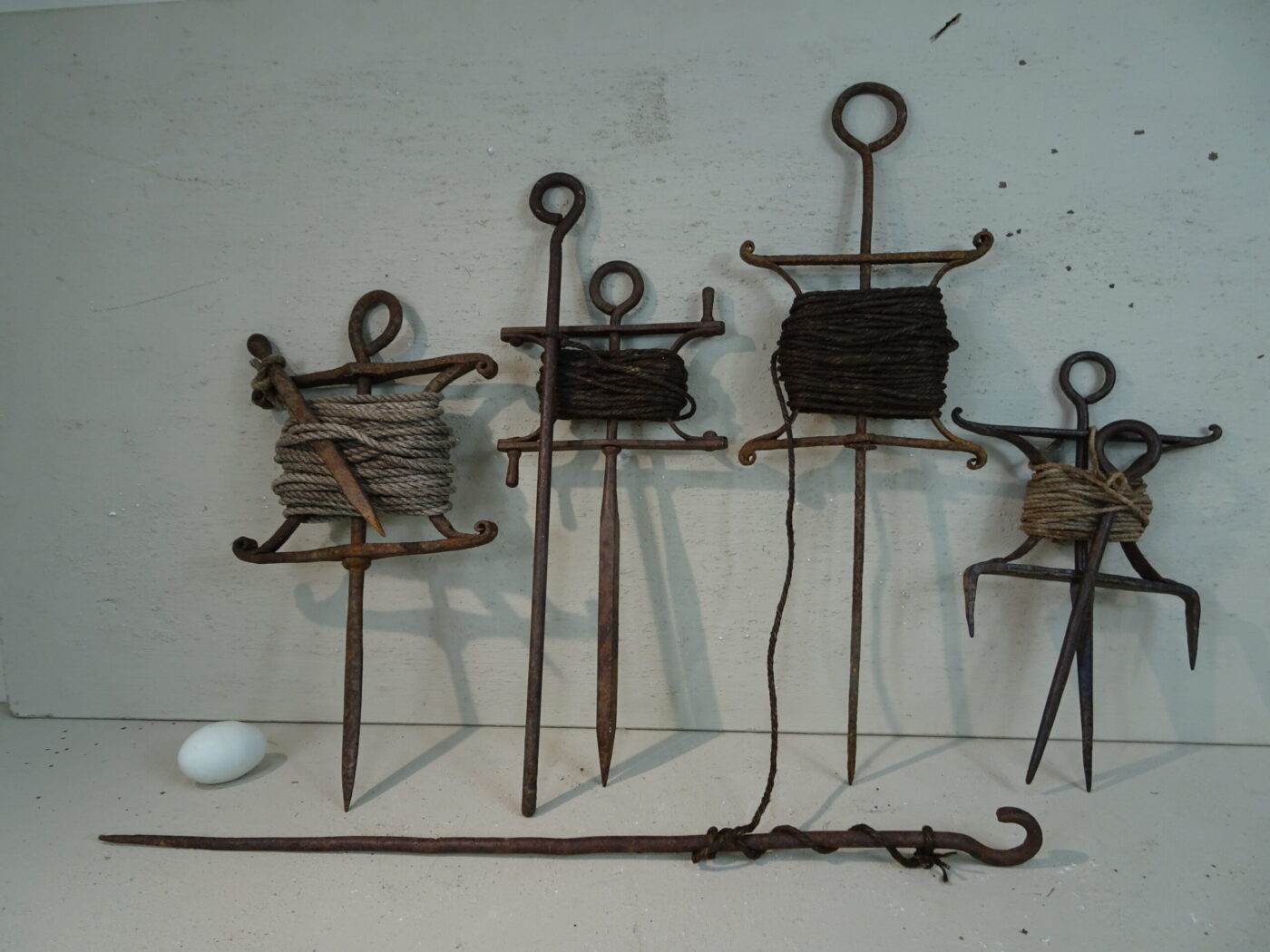 Essential to every kitchen garden and very useful to all flower areas. We always keep a selection of garden lines in varying sizes, eras and styles - all in excellent condition and perfect working order. The older pieces are blacksmith hand-forged and the 1900s versions are mostly cast. All are beautiful, functional and indispensable for a well tended garden.