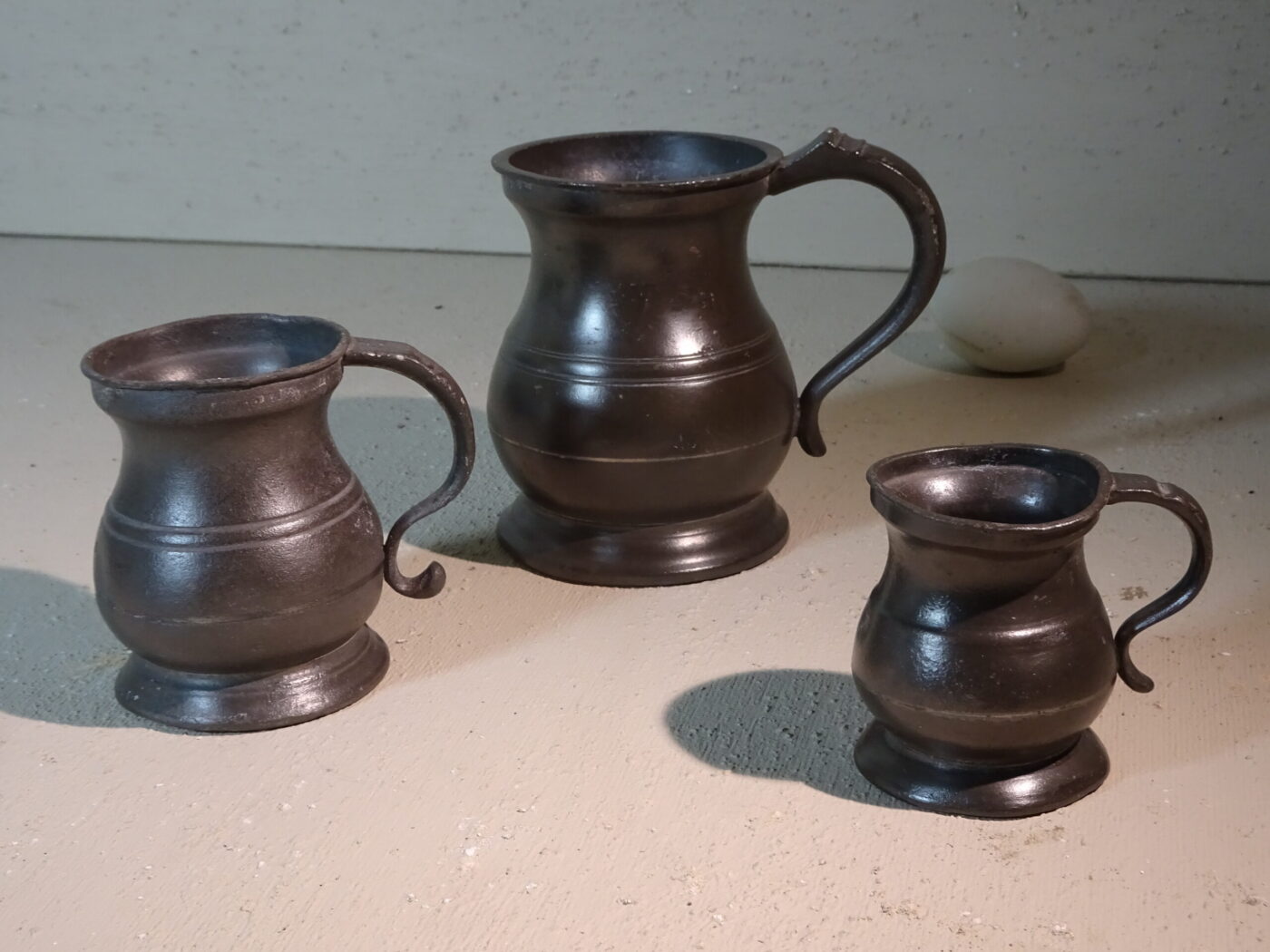 Perfectly drinkable-from but also excellent vases for posies or other cut flowers. The pint mreasure is marked as made by Gaskell& Chambers of Birmingham and verified for measure by HM Customs + Excise in 1922, the other two are not marked but are earlier, 1800s. All in fine condition.